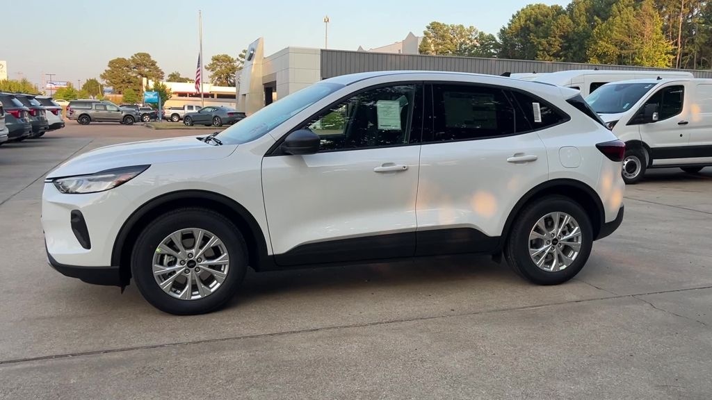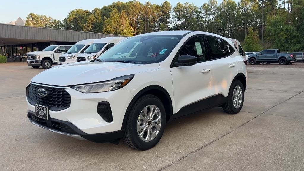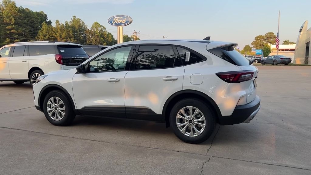 Oxford White 2025 Ford Escape Active FWD 8-Speed Automatic 1.5L EcoBoost 3.81 Axle Ratio, 4-Wheel Disc Brakes, 6 Speakers, ABS brakes, Air Conditioning, Alloy wheels, AM/FM radio: SiriusXM, AM/FM Stereo, Auto High-beam Headlights, Automatic temperature control, Brake assist, Bumpers: body-color, Compass, Delay-off headlights, Driver door bin, Driver vanity mirror, Dual front impact airbags, Dual front side impact airbags, Electronic Stability Control, Emergency communication system: SYNC 4 911 Assist, FordPass Connect, Four wheel independent suspension, Front anti-roll bar, Front Bucket Seats, Front Center Armrest, Front dual zone A/C, Front reading lights, Fully automatic headlights, Illuminated entry, Knee airbag, Low tire pressure warning, Occupant sensing airbag, Outside temperature display, Overhead airbag, Overhead console, Panic alarm, Passenger door bin, Passenger vanity mirror, Power door mirrors, Power steering, Power windows, Radio data system, Rear anti-roll bar, Rear reading lights, Rear seat center armrest, Rear window defroster, Rear window wiper, Remote keyless entry, Speed control, Speed-sensing steering, Speed-Sensitive Wipers, Split folding rear seat, Spoiler, Steering wheel mounted audio controls, SYNC 4, Tachometer, Telescoping steering wheel, Tilt steering wheel, Traction control, Trip computer, Unique Cloth Front Bucket Seats, Variably intermittent wipers, Wheels: 17" Shadow Silver-Painted Aluminum.