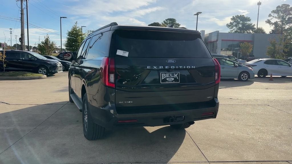 Dark Matter Gray Metallic 2025 Ford Expedition Max Active RWD 10-Speed Automatic EcoBoost 3.5L V6 GTDi DOHC 24V Twin Turbocharged 3.31 Axle Ratio, 3rd row seats: split-bench, 4-Wheel Disc Brakes, 6 Speakers, ABS brakes, Air Conditioning, Alloy wheels, AM/FM radio: SiriusXM with 360L, Apple CarPlay/Android Auto, Auto High-beam Headlights, Auto-dimming Rear-View mirror, Automatic temperature control, Brake assist, Bumpers: body-color, Cloth Front Captain's Chairs, Compass, Delay-off headlights, Driver door bin, Driver vanity mirror, Dual front impact airbags, Dual front side impact airbags, Electronic Stability Control, Emergency communication system: 911 Assist, Exterior Parking Camera Rear, Four wheel independent suspension, Front anti-roll bar, Front Bucket Seats, Front Center Armrest, Front dual zone A/C, Front reading lights, Fully automatic headlights, Heated door mirrors, Illuminated entry, Low tire pressure warning, Navigation System, Occupant sensing airbag, Outside temperature display, Overhead airbag, Overhead console, Panic alarm, Passenger door bin, Passenger vanity mirror, Power door mirrors, Power driver seat, Power passenger seat, Power steering, Power windows, Radio data system, Radio: AM/FM Stereo w/MP3 Capable, Rear air conditioning, Rear anti-roll bar, Rear reading lights, Rear window defroster, Rear window wiper, Reclining 3rd row seat, Remote keyless entry, Security system, SiriusXM w/360L, Speed control, Speed-sensing steering, Speed-Sensitive Wipers, Split folding rear seat, Spoiler, Steering wheel mounted audio controls, Tachometer, Telescoping steering wheel, Tilt steering wheel, Traction control, Trip computer, Variably intermittent wipers, Voltmeter, Wheels: 18" Dark Alloy Painted Aluminum.