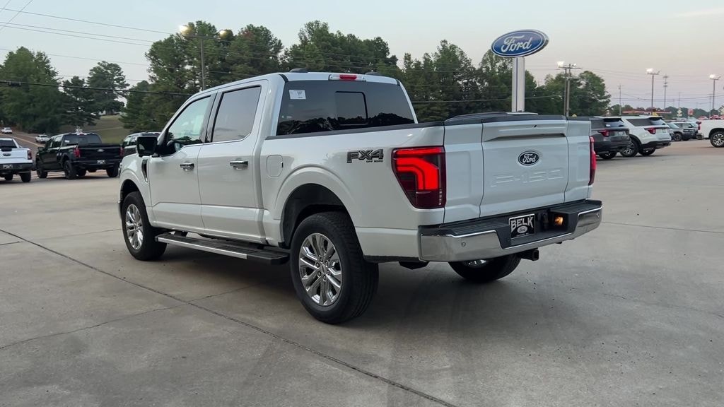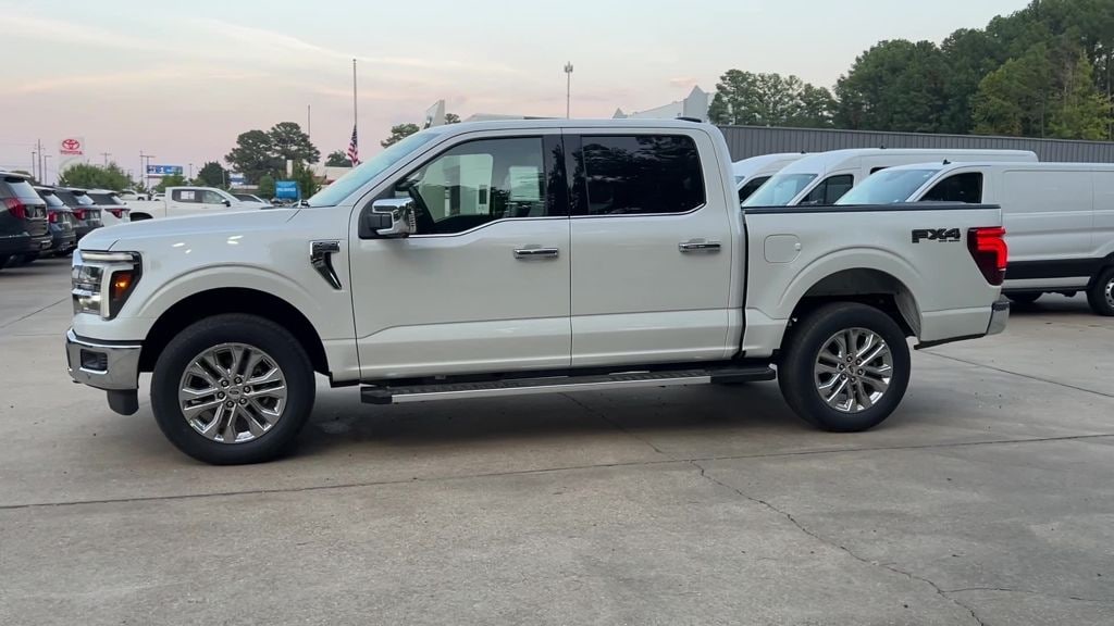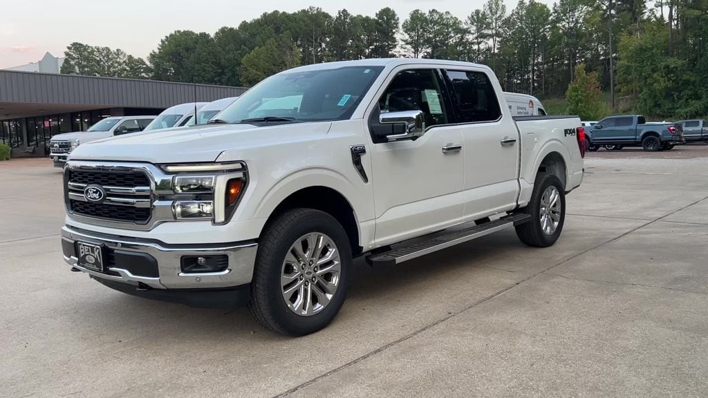 Star White Metallic Tri-Coat 2025 Ford F-150 Lariat 4WD 10-Speed Automatic 5.0L V8 4WD, 3.31 Axle Ratio, 4-Wheel Disc Brakes, 8 Speakers, ABS brakes, ActiveX Trimmed Bucket Seats, Adjustable pedals, Air Conditioning, Alloy wheels, AM/FM radio: SiriusXM with 360L, Auto High-beam Headlights, Auto-dimming door mirrors, Auto-dimming Rear-View mirror, Automatic temperature control, Brake assist, Bumpers: chrome, Chrome wheels, Compass, Delay-off headlights, Driver door bin, Driver vanity mirror, Dual front impact airbags, Dual front side impact airbags, Electronic Stability Control, Emergency communication system: SYNC 4 911 Assist, Front anti-roll bar, Front Bucket Seats, Front Center Armrest, Front dual zone A/C, Front fog lights, Front reading lights, Front wheel independent suspension, Fully automatic headlights, Garage door transmitter, Heated door mirrors, Heated front seats, Heated steering wheel, Illuminated entry, Low tire pressure warning, Memory seat, Navigation system: Connected Navigation, Occupant sensing airbag, Outside temperature display, Overhead airbag, Overhead console, Panic alarm, Passenger door bin, Passenger vanity mirror, Pedal memory, Power door mirrors, Power driver seat, Power passenger seat, Power steering, Power windows, Radio data system, Radio: B&O Sound System by Bang & Olufsen, Rain sensing wipers, Rear reading lights, Rear seat center armrest, Rear step bumper, Rear window defroster, Remote keyless entry, Security system, Speed control, Split folding rear seat, Steering wheel mounted audio controls, SYNC 4 w/Enhanced Voice Recognition, Tachometer, Telescoping steering wheel, Tilt steering wheel, Traction control, Trip computer, Turn signal indicator mirrors, Variably intermittent wipers, Ventilated front seats, Voltmeter, Wheels: 18" Chrome-Like PVD, 4WD.