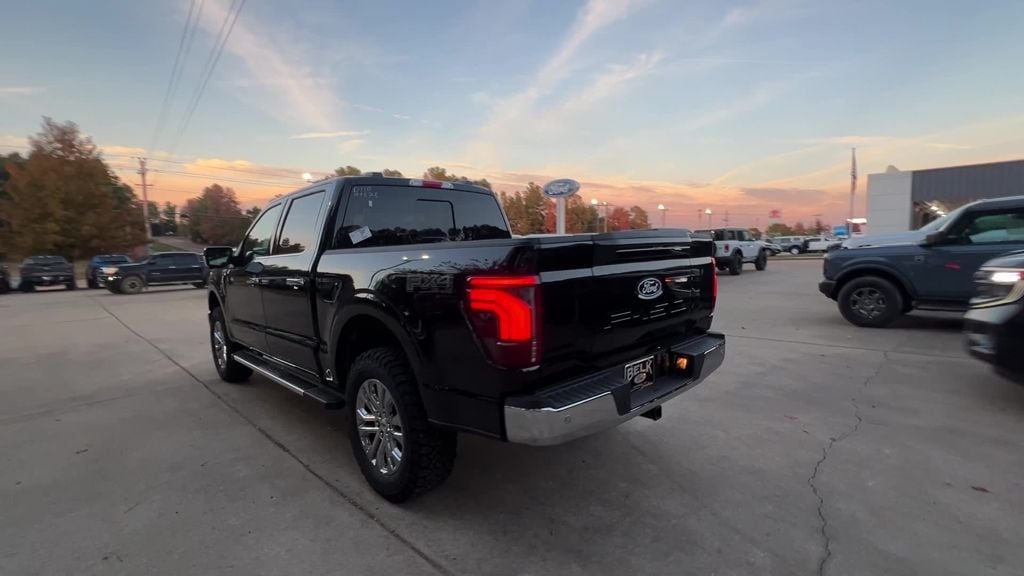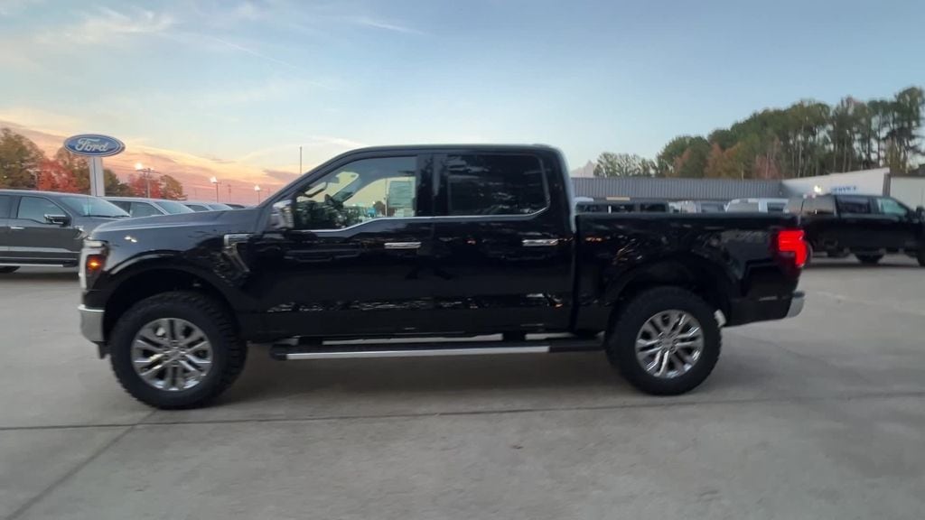 Agate Black Metallic 2025 Ford F-150 Lariat 4WD 10-Speed Automatic 5.0L V8 4WD, 3.31 Axle Ratio, 4-Wheel Disc Brakes, 8 Speakers, ABS brakes, ActiveX Trimmed Bucket Seats, Adjustable pedals, Air Conditioning, Alloy wheels, AM/FM radio: SiriusXM with 360L, Auto High-beam Headlights, Auto-dimming door mirrors, Auto-dimming Rear-View mirror, Automatic temperature control, Brake assist, Bumpers: chrome, Chrome wheels, Compass, Delay-off headlights, Driver door bin, Driver vanity mirror, Dual front impact airbags, Dual front side impact airbags, Electronic Stability Control, Emergency communication system: SYNC 4 911 Assist, Front anti-roll bar, Front Bucket Seats, Front Center Armrest, Front dual zone A/C, Front fog lights, Front reading lights, Front wheel independent suspension, Fully automatic headlights, Garage door transmitter, Heated door mirrors, Heated front seats, Heated steering wheel, Illuminated entry, Low tire pressure warning, Memory seat, Navigation system: Connected Navigation, Occupant sensing airbag, Outside temperature display, Overhead airbag, Overhead console, Panic alarm, Passenger door bin, Passenger vanity mirror, Pedal memory, Power door mirrors, Power driver seat, Power passenger seat, Power steering, Power windows, Radio data system, Radio: B&O Sound System by Bang & Olufsen, Rain sensing wipers, Rear reading lights, Rear seat center armrest, Rear step bumper, Rear window defroster, Remote keyless entry, Security system, Speed control, Split folding rear seat, Steering wheel mounted audio controls, SYNC 4 w/Enhanced Voice Recognition, Tachometer, Telescoping steering wheel, Tilt steering wheel, Traction control, Trip computer, Turn signal indicator mirrors, Variably intermittent wipers, Ventilated front seats, Voltmeter, Wheels: 18" Chrome-Like PVD, 4WD.