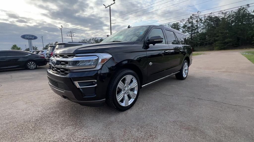22 Speakers, 26mm Engine Radiator, 360-Degree Camera w/Trailer Reverse Guidance, 3rd row seats: split-bench, 4-Wheel Disc Brakes, ABS brakes, Adjustable pedals, Air Conditioning, Alloy wheels, AM/FM radio: SiriusXM with 360L, Auto High-beam Headlights, Auto-dimming door mirrors, Auto-dimming Rear-View mirror, Automatic temperature control, Brake assist, Bumpers: body-color, Compass, Delay-off headlights, Driver door bin, Driver vanity mirror, Dual front impact airbags, Dual front side impact airbags, Electronic Stability Control, Emergency communication system: SYNC 4 911 Assist, Equipment Group 400A Standard Package, Exterior Parking Camera Rear, Four wheel independent suspension, Front anti-roll bar, Front Bucket Seats, Front Center Armrest, Front dual zone A/C, Front fog lights, Front reading lights, Front Tow Hooks, Fully automatic headlights, Garage door transmitter, Genuine wood console insert, Genuine wood dashboard insert, Genuine wood door panel insert, Heated door mirrors, Heated front seats, Heated rear seats, Heated steering wheel, Heated/Vent Prem Del Rio Lthr Fr Captain's Chairs, Heavy-Duty Trailer Tow Package, Illuminated entry, Integrated Trailer Brake Controller, Leather steering wheel, Low tire pressure warning, Memory seat, Navigation system: Connected Navigation, Occupant sensing airbag, Outside temperature display, Overhead airbag, Overhead console, Panic alarm, Passenger door bin, Passenger vanity mirror, Pedal memory, Power door mirrors, Power driver seat, Power Liftgate, Power moonroof, Power passenger seat, Power steering, Power windows, Pro Trailer Backup Assist, Radio data system, Radio: B&O Unleashed Sound System by Bang & Olufsen, Rain sensing wipers, Rear air conditioning, Rear anti-roll bar, Rear reading lights, Rear window defroster, Rear window wiper, Reclining 3rd row seat, Remote keyless entry, Security system, SiriusXM w/360L, Speed control, Speed-sensing steering, Speed-Sensitive Wipers, Split folding rear seat, Spoiler, Steering wheel memory, Steering wheel mounted audio controls, SYNC 4 w/Enhanced Voice Recognition, Tachometer, Telescoping steering wheel, Tilt steering wheel, Traction control, Trip computer, Turn signal indicator mirrors, Variably intermittent wipers, Ventilated front seats, Voltmeter, Wheels: 22" 6-Spoke Polished Aluminum. Priced below KBB Fair Purchase Price! 2024 Ford Expedition Max King Ranch Black Metallic 10-Speed Automatic 4WD EcoBoost 3.5L V6 GTDi DOHC 24V Twin Turbocharged